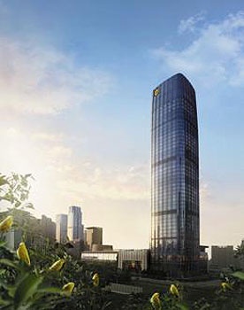 酒店开业时间2008年10月23日,楼高40层,共有客房总数548间(套),高级客房面积45平米。